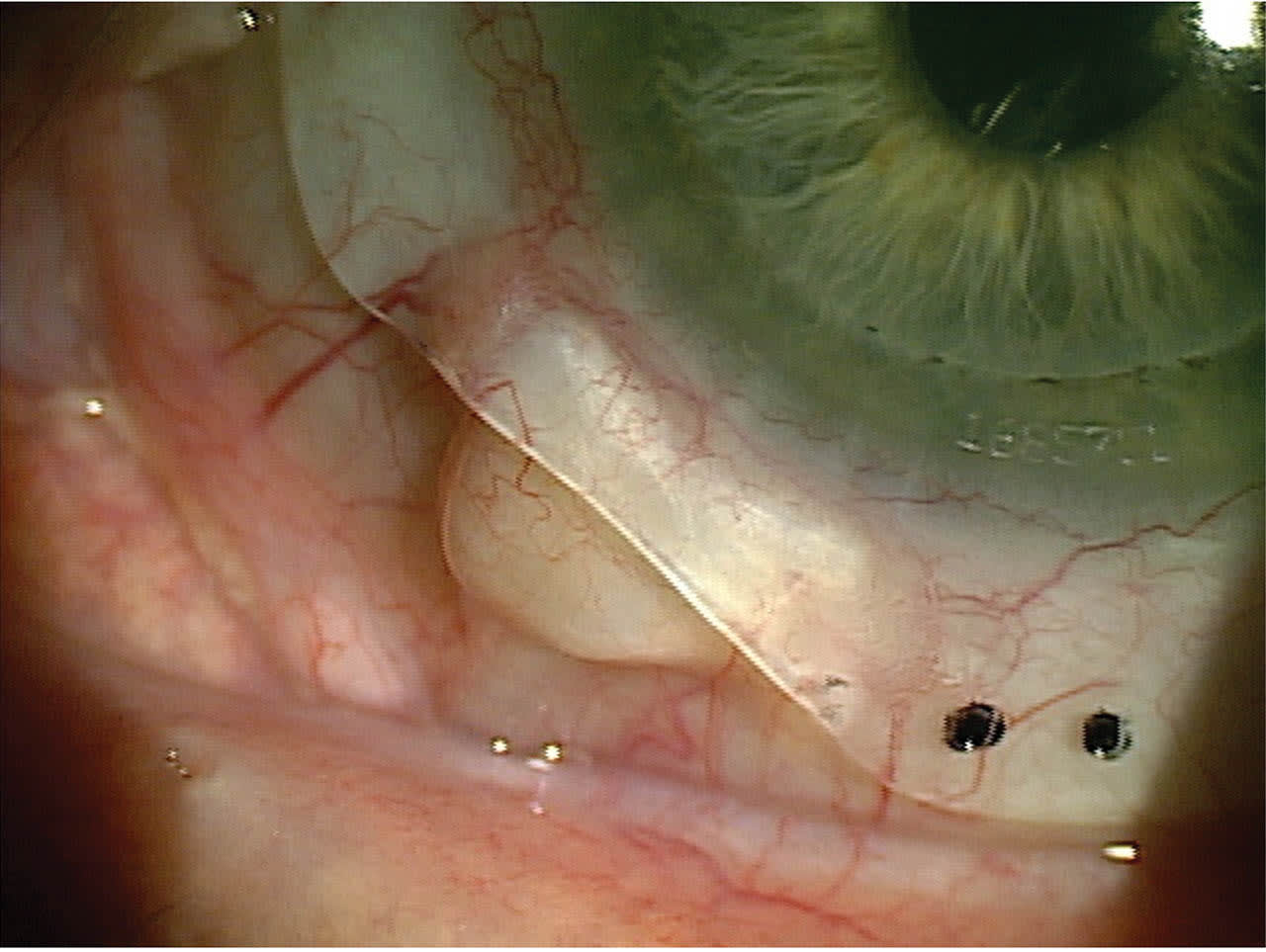 Figure 2: Note how the scleral contact lens is able to fit over this glaucoma treatment device.