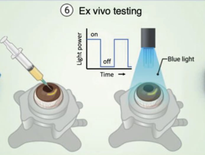 An Injectable biomaterial triggered by pulsed low-energy blue light could be used to reshape and thicken damaged corneas, according to a press release issued by the University of Ottawa. (The research team was comprised of two members of the school’s faculty, along with two Université de Montréal scientists.)