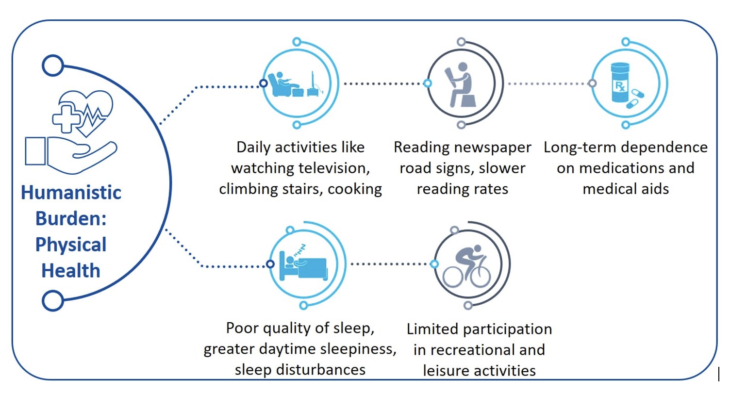 The chronic symptoms of DED, such as ocular pain, altered ocular sensation, blurry vision, and ocular discomfort negatively impact the overall health-related quality of life (HR-QoL) in patients.2,3 Blurry vision, for example, restricts and adversely affects several daily activities 4,5 (Figure 1), whereas fluctuating vision can lead to low participation in recreational/leisure activities.5
