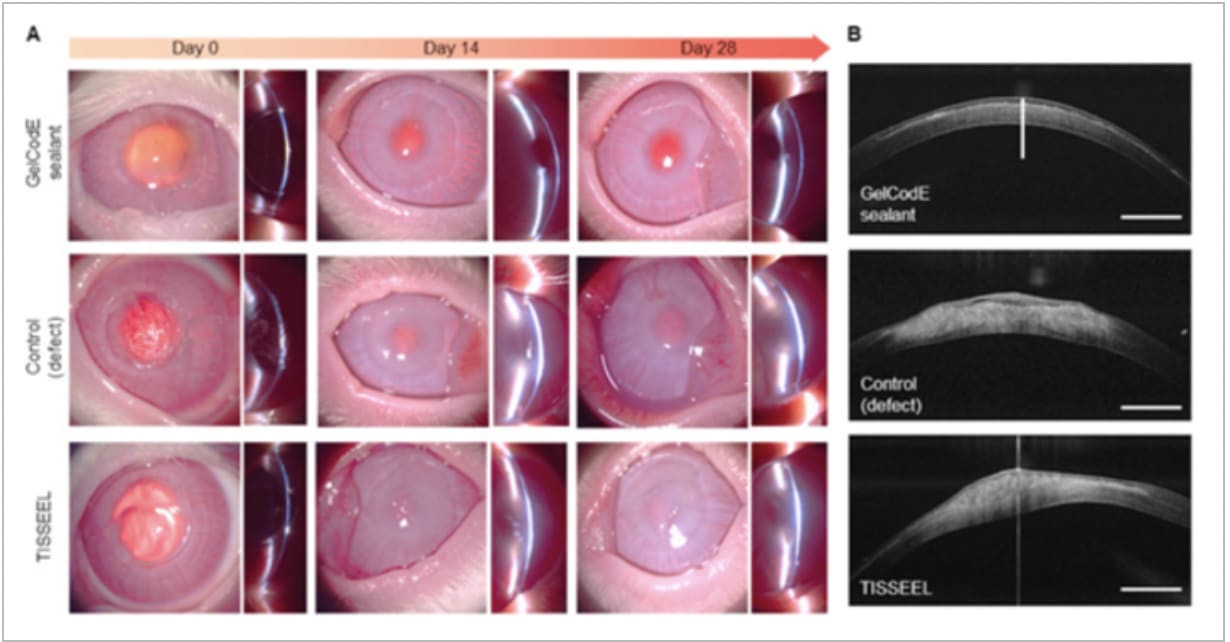 An extracellular matrix-based sticky sealant designed to reconstruct corneal tissue has been created by a team at the Pohang University of Science and Technology, in Gyeongbuk. Korea. When exposed to 3 minutes of irradiated light, the adhesive integrates with adjacent corneal tissues, repairing damage.